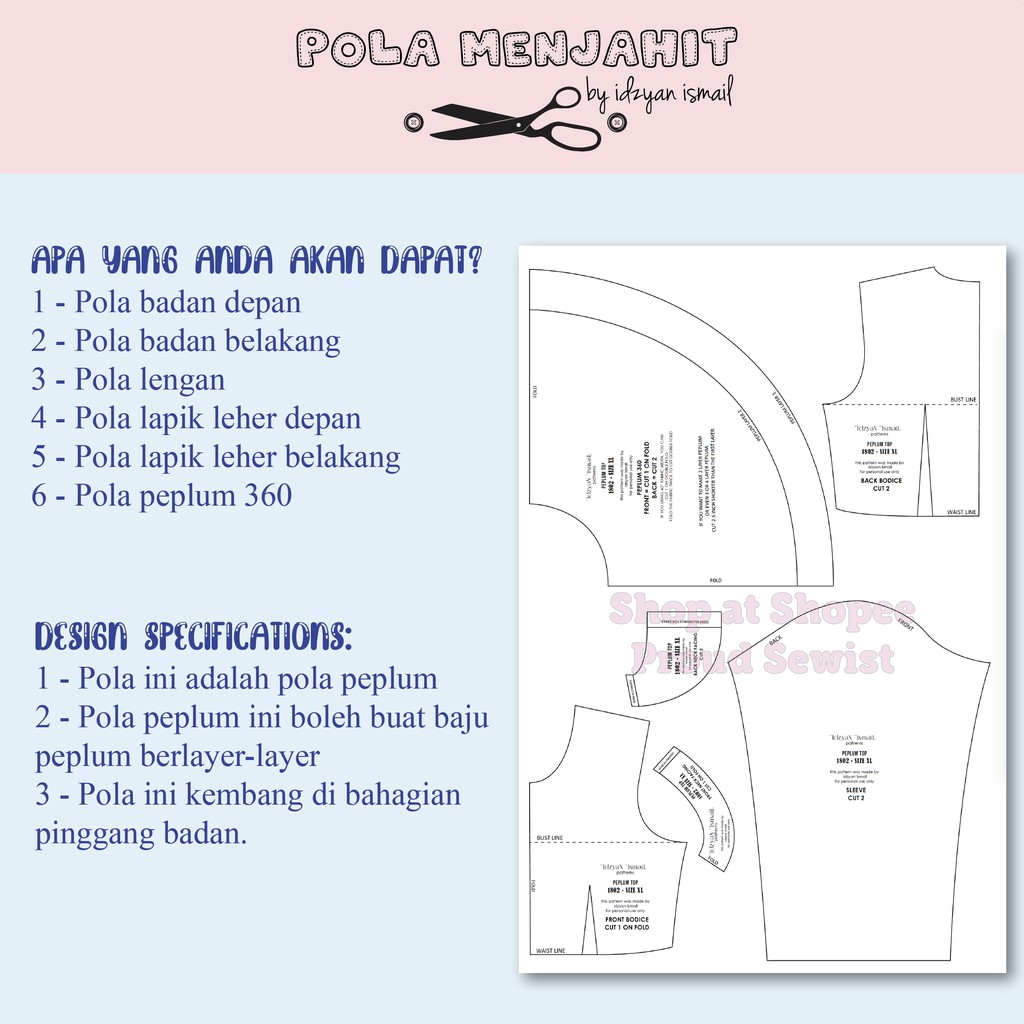 Kumpulan ilmu dan pengetahuan penting contoh pola baju peplum.